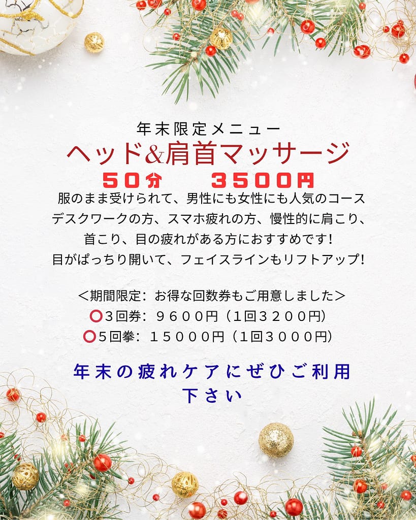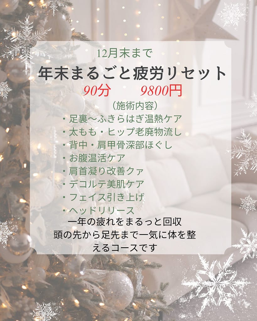 全身ケアをまるっとして、スッキリ新しい年を迎えましょう