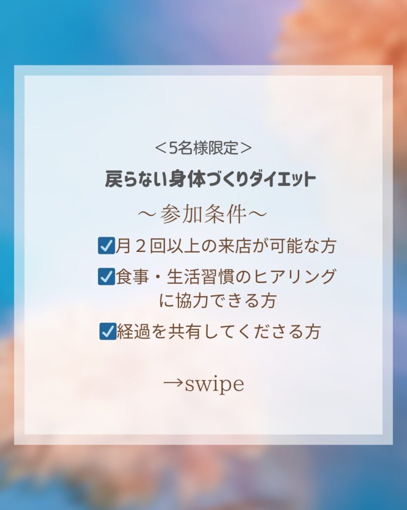 ご希望の方はLINEのコメントにて”ダイエット希望”とお書き下さい!返信致します!