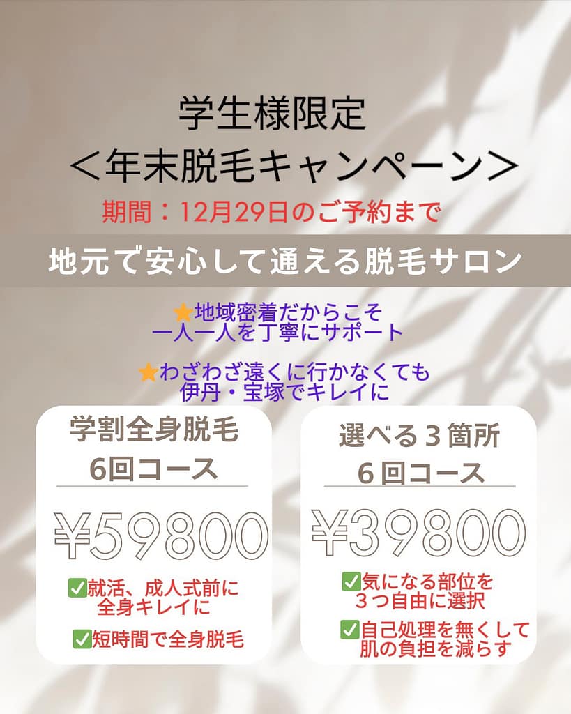 伊丹市で随一の最新式の高速光脱毛により、痛くない脱毛をご提供しています。