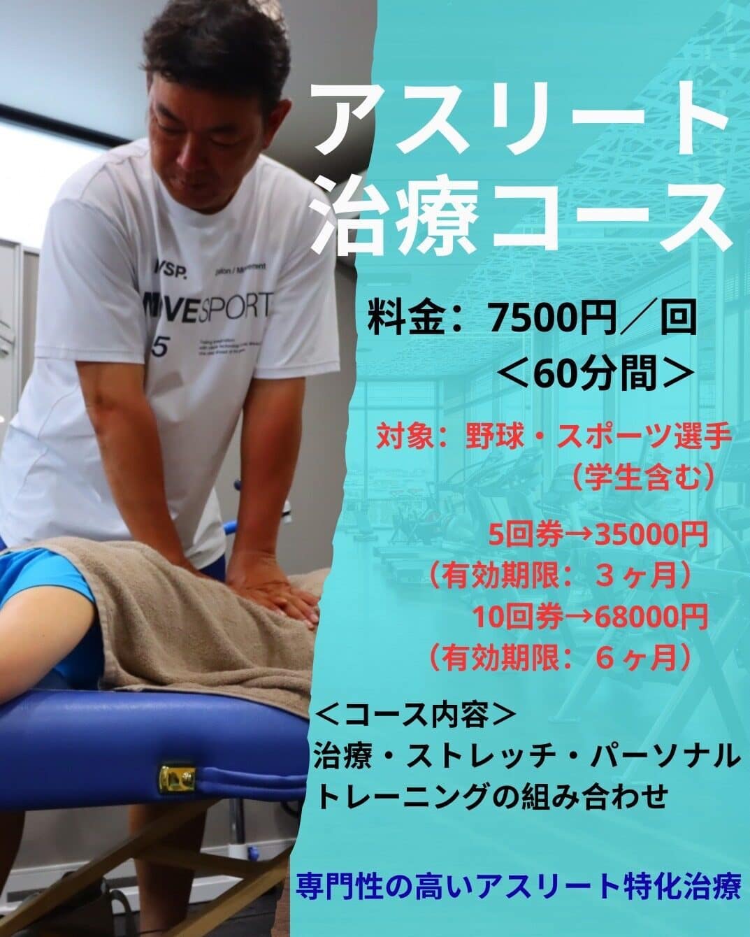 専門性の高いアスリート特化治療を行います。